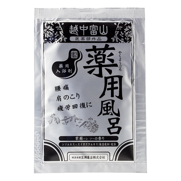 | 越中富山薬用風呂 [紫蘇の香り] ●シソエキス・スイカズラエキス(保湿成分)配合の薬用入浴剤です。 ●腰痛・肩のこり・疲労回復に ●紫蘇の香り ●紫色の湯 【効能 効果】 疲労回復、荒れ性、あせも、にきび、しもやけ、ひび、しっしん、あかぎれ、神経痛、リウマチ、肩のこり、腰痛、うちみ、くじき、冷え症、産前産後の冷え症、痔 |