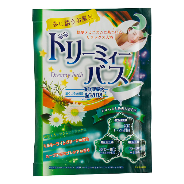 | 快夢メカニズムに基づいたおやすみ前のリラックス入浴料。 入浴でカラダを温めながら、リラックス効果が高いとされる湯色とアロマの香りに包まれて、 眠る前のリラックスタイムを お過ごしください。 肌くつろぎ成分「海洋深層水」&「GABA」配合。 [ハーブアロマブレンドの香り] お肌にうるおいを与えるエッセンシャルオイル(精油) 「ローマカミツレ花オイル」「ローズマリーオイル」配合。 ミルキーライトグリーンの湯色・ハーブアロマブレンドの香り |