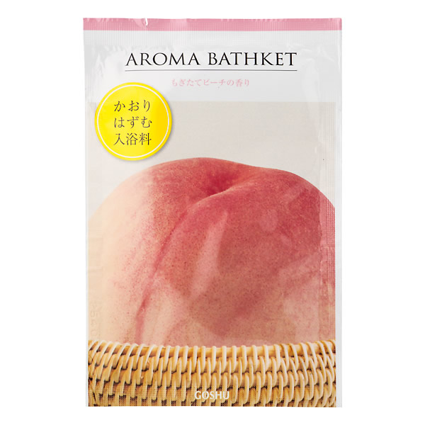 | ギュっとつまったエキス入り かろりがはずむ、アロマバス。 [もぎたてピーチの香り] うるおい成分ピーチ果汁配合 クリアライトピンクのお湯色 |