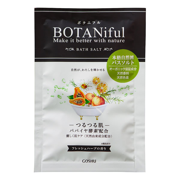| ボタニカル成分、オーガニック認証成分など、こだわり天然成分をたっぷり使用。 自然のまろやかな湯色と香りにつつまれるお肌にも環境にも優しいバスソルトです。 [フレッシュハーブ] つるつる肌 優しく肌ケア フレッシュハーブの香り ライトグリーンの湯色 つや肌オーガニック認証成分:ローズマリー たんぱく質分解成分:パパイヤ酵素(整肌成分) 天然色素・天然香料 |