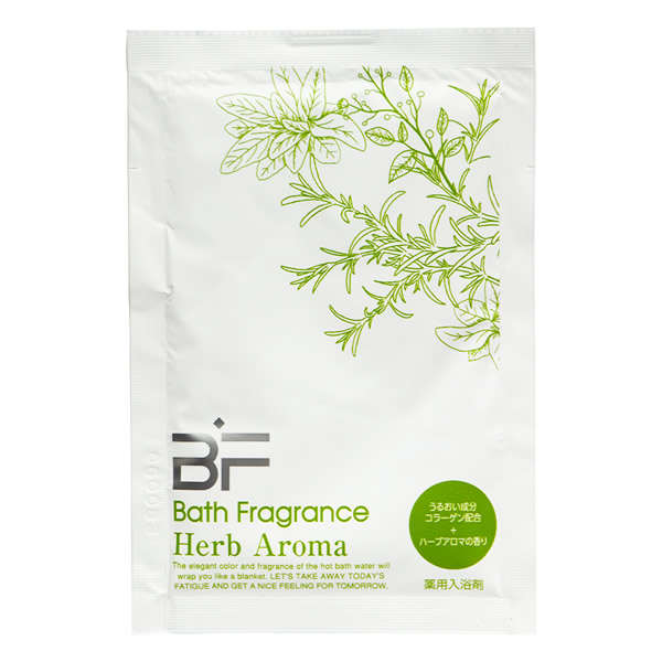 | 厳選されたフレグランスを使用した薬用入浴剤 有効成分が温浴効果を高め血行を促進します。うるおい成分コラーゲン配合。 [効果・効能] 疲労回復、冷え症、荒れ性、うちみ、肩こり、くじき、神経痛、リウマチ、しもやけ、あかぎれ、産前産後の冷え症、にきび、しっしん、ひび、あせも、痔 [ハーブアロマ] ほのかな優しいハーブの香りで、心地よいバスタイムが楽しめます。 クリアグリーンの湯色 |
