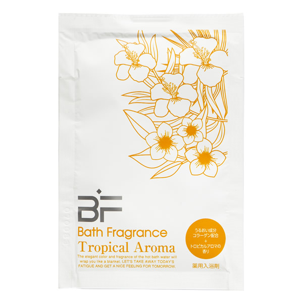 | 厳選されたフレグランスを使用した薬用入浴剤 有効成分が温浴効果を高め血行を促進します。うるおい成分コラーゲン配合。 [効果・効能] 疲労回復、冷え症、荒れ性、うちみ、肩こり、くじき、神経痛、リウマチ、しもやけ、あかぎれ、産前産後の冷え症、にきび、しっしん、ひび、あせも、痔 [トロピカルアロマ] トロピカルで華やかな香りが、気分をリフレッシュさせてくれます。 クリアオレンジの湯色 |