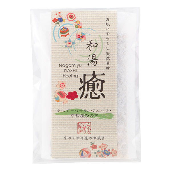 | 京都の町屋「京のくすり屋」が厳選した天然素材を使用した「伝統」と「技」のお風呂です。 香料や添加物などは一切使用しておりません。 [癒の湯〜ふんわりほのぼの] やさしい香りのラベンダーに甘い香りのフェンネルとシナモンを加えました。 1日の終わりに癒しのお風呂をお楽しみください。 [野草(ハーブ)ブレンド] 元禄14年創業・平井常榮堂の野草(ハーブ)を、ひとつひとつ手作りで独自ブレンドしました。 添加物を一切使用していない天然の優しい野草です。 [ひのきチップ] 『北山丸太伝承の会』認定の「ひのき」を使用。京都・北山で実際に林業に携わる職人により新鮮な「ひのき」が選別されています。 |