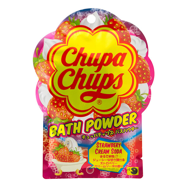 | チュパチャプスのフレーバーが入浴剤になりました! 本物のクリーミーソーダのように爽やか&クリーミー★ 甘く美味しそうな香りが広がります! [ストロベリークリームソーダ] お湯の香り:ジューシーな甘さ弾けるストロベリークリームソーダの香り お湯の色:レッド |