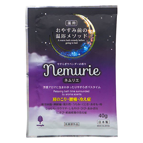 | 芳香アロマに包まれゆったりやすらぎバスタイム 【効能・効果】 肩のこり・腰痛・冷え症・疲労回復・神経痛・荒れ性・うちみ・くじき・あせも・痔・しっしん・リウマチ・しもやけ・ひび・あかぎれ・にきび・産前産後の冷え症 [やすらぎラベンダーの香り] 落ち着いたハーバルの香りが気分をさわやかにします。 |