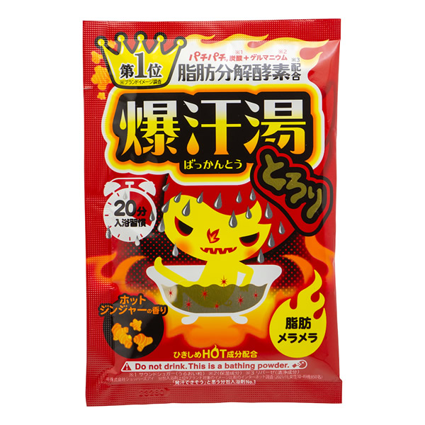 | ココロとカラダに溜まったものを、バスタイムでリセット! 頑張った1日の最後に、汗と一緒にスッキリ! [ホットジンジャーの香り] クリアゴールドのお湯色(透明ゴールド) ●ひきしめHOT成分 トウガラシエキス・ショウガ根エキス(HOT成分)、岩塩(ひきしめ成分) ●脂肪分解酵素 リパーゼ(清浄成分) ●ゲルマニウム(保湿成分) ●パチパチッ炭酸(うるおい粒) ●温泉ミネラル(すべすべ成分) ●ガラナエキs(ひきしめ成分) |