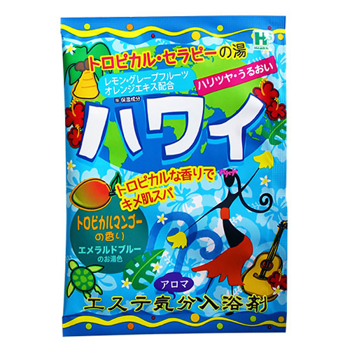 | リッチな香りとリゾート感あふれる美肌エステでトラベルエステ気分 [ハワイ トロピカル・セラピーの湯] ハリツヤ・うるおい ジャンルを問わず人々を魅了する常夏の島ハワイの気分を楽しめます。 美容成分:レモン・グレープフルーツ・オレンジエキス 香り:トロピカルマンゴー お湯色:エメラルドブルー |