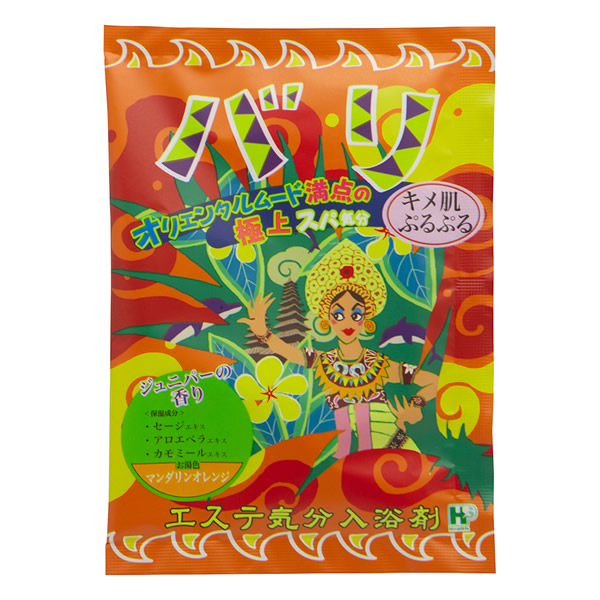 | リッチな香りとリゾート感あふれる美肌エステでトラベルエステ気分 [バリ 極上・オリエンタルスパの湯] 地上最後の楽園と称されるバリ。 エキゾチックな南国を感じるひと時をお楽しみください。 保湿成分:セージエキス・アロエベラエキス・カモミールエキス 香り:ジュニパー お湯色:マンダリンオレンジ |