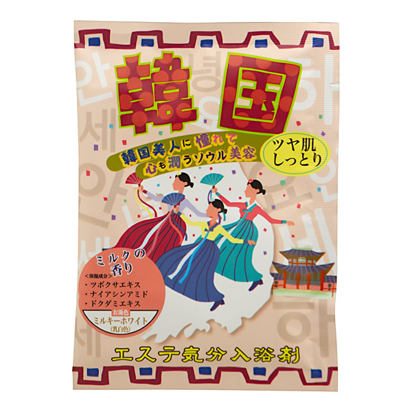 | リッチな香りとリゾート感あふれる美肌エステでトラベルエステ気分 [韓国・心潤うソウル美容の湯] 美容への関心が高い国 韓国。 流行の保湿成分ツボクサエキス、ナイアシンアミド、ドクダミエキスを贅沢配合。 お肌が喜ぶ入浴剤です。 保湿成分:ツボクサエキス・ナイアシンアミド・ドクダミエキス 香り:ミルク お湯色:ミルキーホワイト |