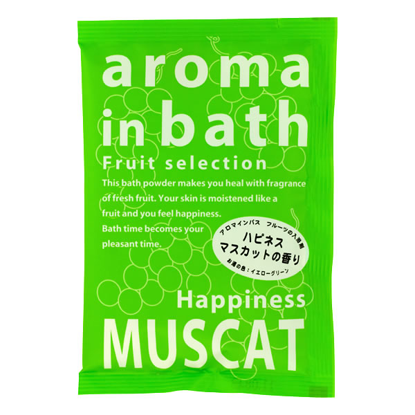 | 心地良い香りでリラクゼーションへ導く入浴剤です。 [ハピネス マスカットの香り] 肌のトラブルを防ぎ、健やかな肌を保つブドウ葉エキス(保湿成分)配合 幸福をイメージさせる、みずみずしくほのかに甘いマスカットの香りをお楽しみください。 |