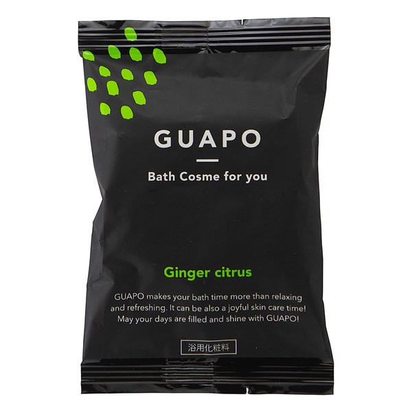 | 毎日を健康で美しく過ごすことを求める全ての人へ、ジェンダーレスな美容入浴料GUAPO。 潤い成分(キウイエキス、アーチチョーク葉エキス、ホホバ種子油、ユズセラミド、ビタミンC誘導体、スクワラン)配合 <肌へのいたわり処方> ●塩素除去 水道水に含まれる塩素を除去するための成分(アミノ酸誘導体)を配合しているため、さら湯特有のピリピリ感を低減し、やわらかく、なめらかな肌ざわりを体感できます。敏感肌でお困りの方にもおすすめです。 ●合成着色料フリー ●パラベンフリー ●アルコールフリー こだわりの無添加処方を採用しているため、3か月以上の赤ちゃんともご一緒にお使いいただけます。 [ジンジャーシトラスの香り] 爽快感のあるジンジャーシトラスの香り 無色透明の湯 |