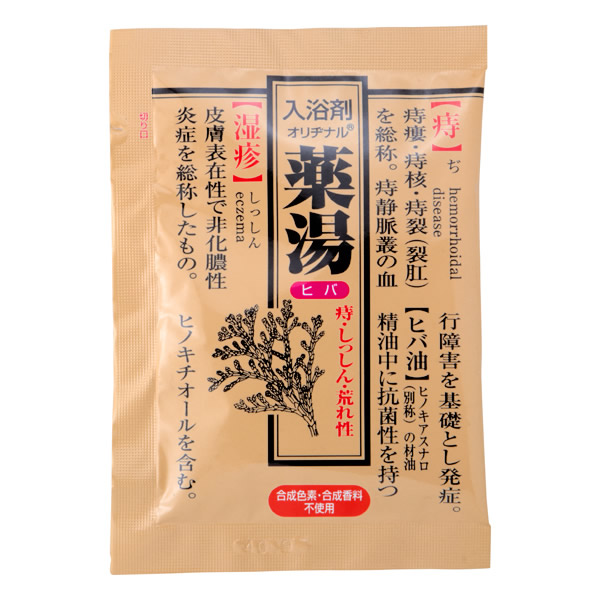 | お悩み別 「オリヂナル」の薬湯シリーズ [ヒバ] 入浴効果を高め、痔・しっしん・荒れ性等に効果的 生薬エキス配合 ・温浴効果による血行促進・新陳代謝を高めます。 ・清浄作用を高め、お肌を清潔にします。 ・油面に広がる保湿成分スクワランが良く後のお肌をガードします。 ・天然ヒバ(ヒノキアスナロ)の自然な香りです。 ・タール系色素および合成香料は使用しておりません。 ・お湯に溶かすと自然な木肌色になります。 [効果・効能] 痔、しっしん、荒れ性、肩のこり、疲労回復、あせも、ひび、しもやけ、冷え症、腰痛、うちみ、神経痛、リウマチ、にきび、あかぎれ、産前産後の冷え症 |
