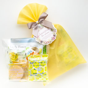 | 温泉タイプの入浴剤をギフトボックスに詰合せしてお届けいたします。 | 空想の世界から飛び出してきたような可愛らしい入浴剤をギフトボックスに詰合せしてお届けいたします。 |