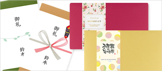 | 最短で当日発送可能! 上司や目上の方には、「御礼」の熨斗をつけたり、同僚や、かしこまらない相手には、「お世話になりました」や「ほんの気持ちです」などのメッセージシールが選べます。 |