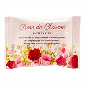 | ● ローズ ド シャルム バスタブレット 250円 (税込275円) ![]() シュワシュワ発泡する炭酸ガスと、ローズガーデンにいるような豊かな香り |