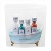| ● アロマ・デ・バスタイム 1,000円 (税込1,100円) バスタブ柄のジッパーバッグに入った楽しいプチギフト |