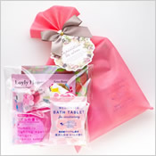 | ● [不織袋ラッピング付] ブルームバスギフト (【B】) 1,170円 (税込1,287円) ふわふわラッピングバッグ入りの、お花やハートの入浴剤のプチギフト |