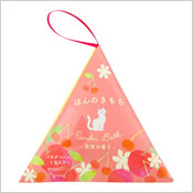 | ● ラミネットエフレーズ パウダーバス 230円 (税込253円) ![]() ![]() いちごの香りを楽しむ 猫柄の紙封筒入パウダーバス |