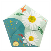 | ● サンキューフラワーバス 230円 (税込253円) ![]() ![]() 幸せを呼ぶ花をデザインしたパウダーバス |