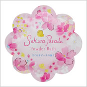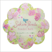 | ● さくらパレードパウダーバス 200円 (税込220円) お花のパッケージに入った春らしいパウダーバス |