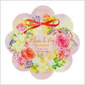 | ● フルールラフェ パウダーバス 220円 (税込242円) ![]() お花型のパッケージに入ったパウダーバス |