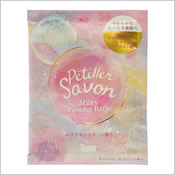 | ● ペティエサボン ミルキーパウダーバス 230円 (税込253円) ![]() ![]() シャボンの香りに包まれるミルキータイプのパウダーバス |
