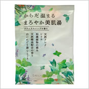 | ● デイリーディライト まろやか美肌バスパウダー 200円 (税込220円) クレイ、シリカ、和漢植物を配合したやわらかなアルカリ性の美肌湯 |