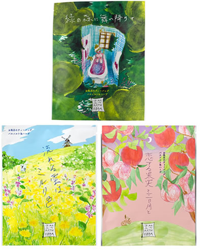 | 不織バッグの中に入浴剤を2個または3個入れて、一言メッセージと名前が入れられるギフトシールで留めてお届けします。 入れる種類や数は、変更することも可能です。 中身をカスタマイズしたい場合は、こちらからどうぞ。 |