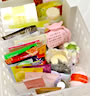 プレゼントボックス型の透明部分から中身が見えるカラフルなプチギフト |